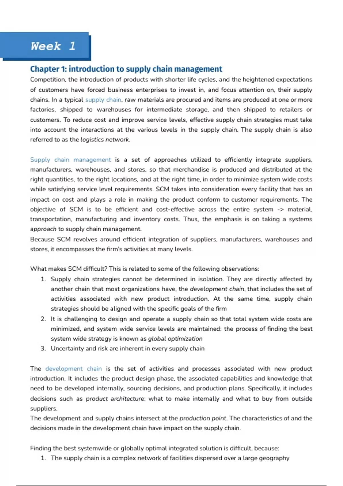 1. The supply chain is a complex network of facilities dispersed over a large geography