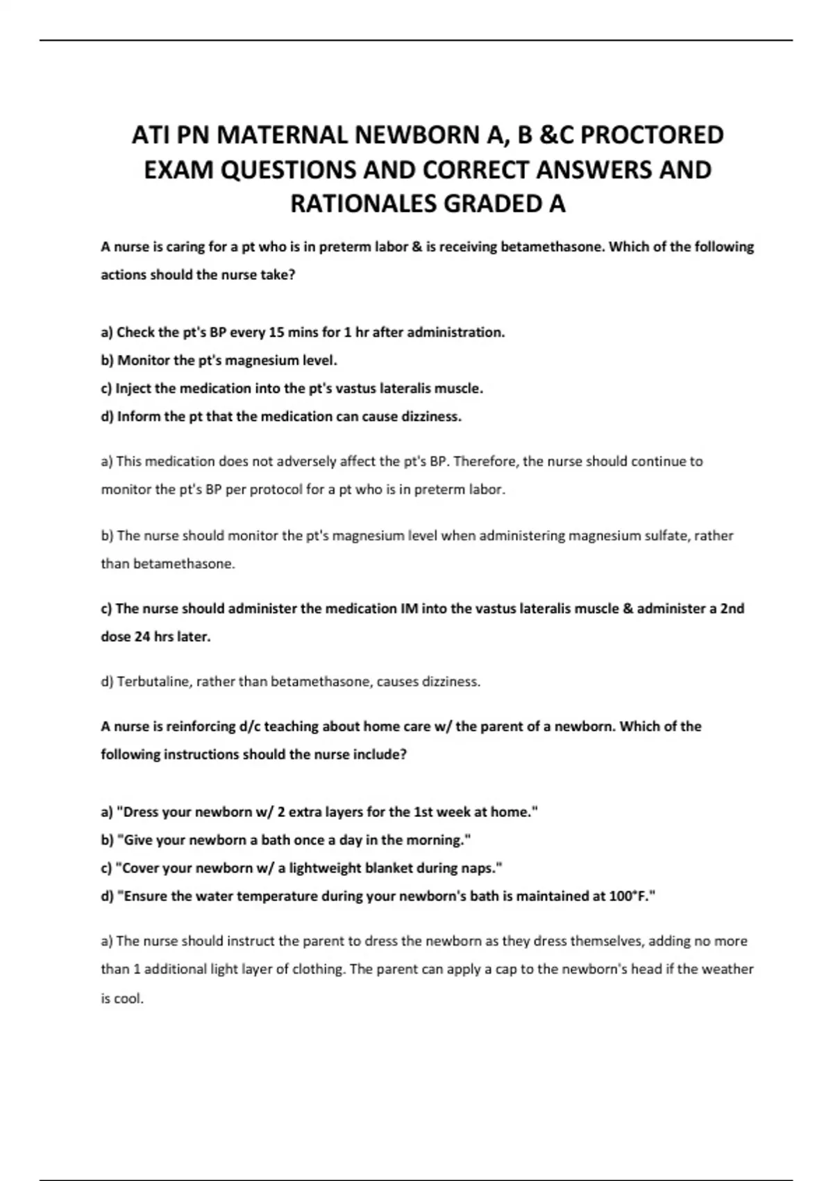 ATI PN MATERNAL NEWBORN A, B &C PROCTORED EXAM QUESTIONS AND CORRECT ANSWERS AND RATIONALES GRADED A