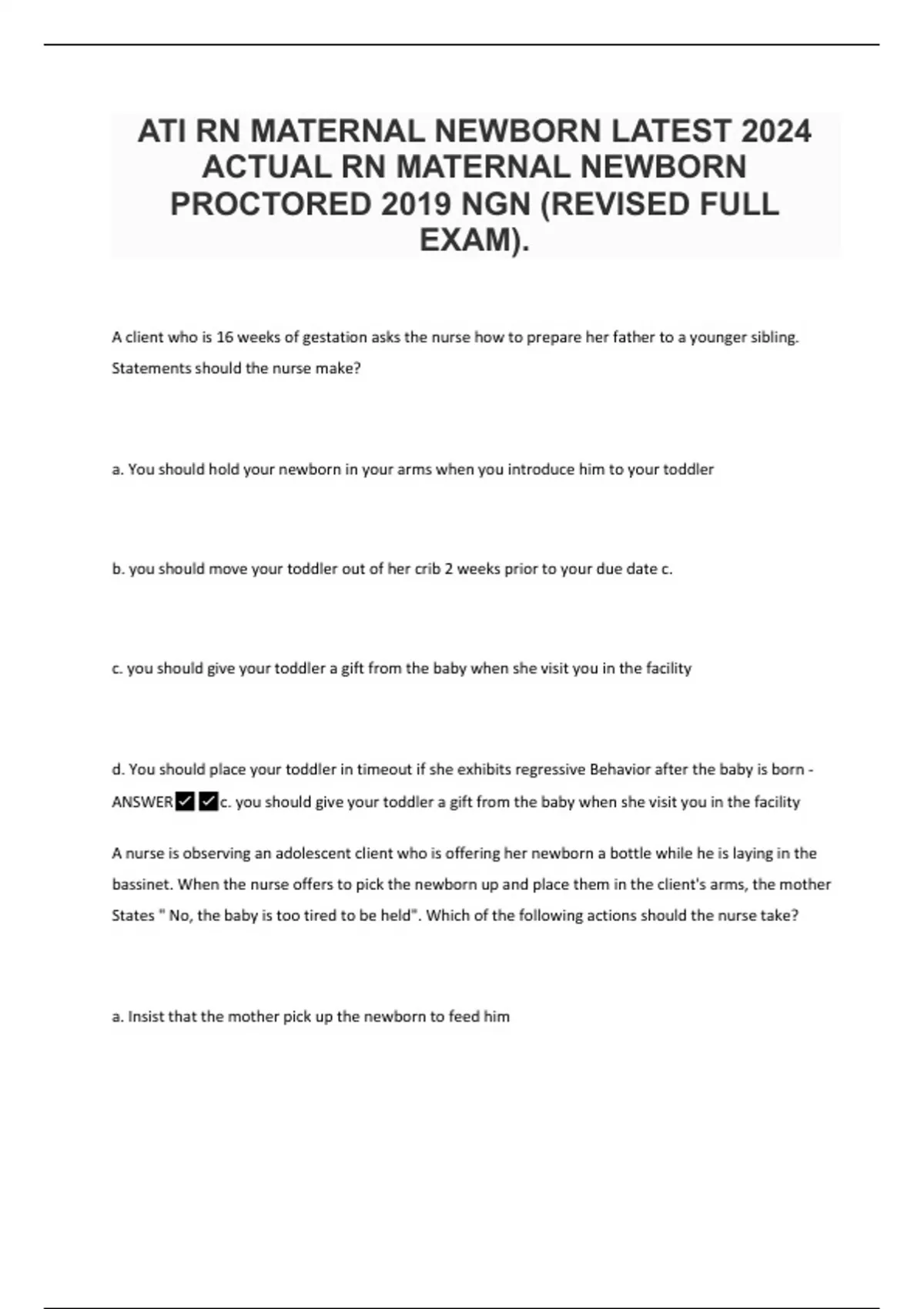 ATI RN MATERNAL NEWBORN LATEST 2024 ACTUAL RN MATERNAL NEWBORN PROCTORED 2019 NGN (REVISED FULL EXAM).