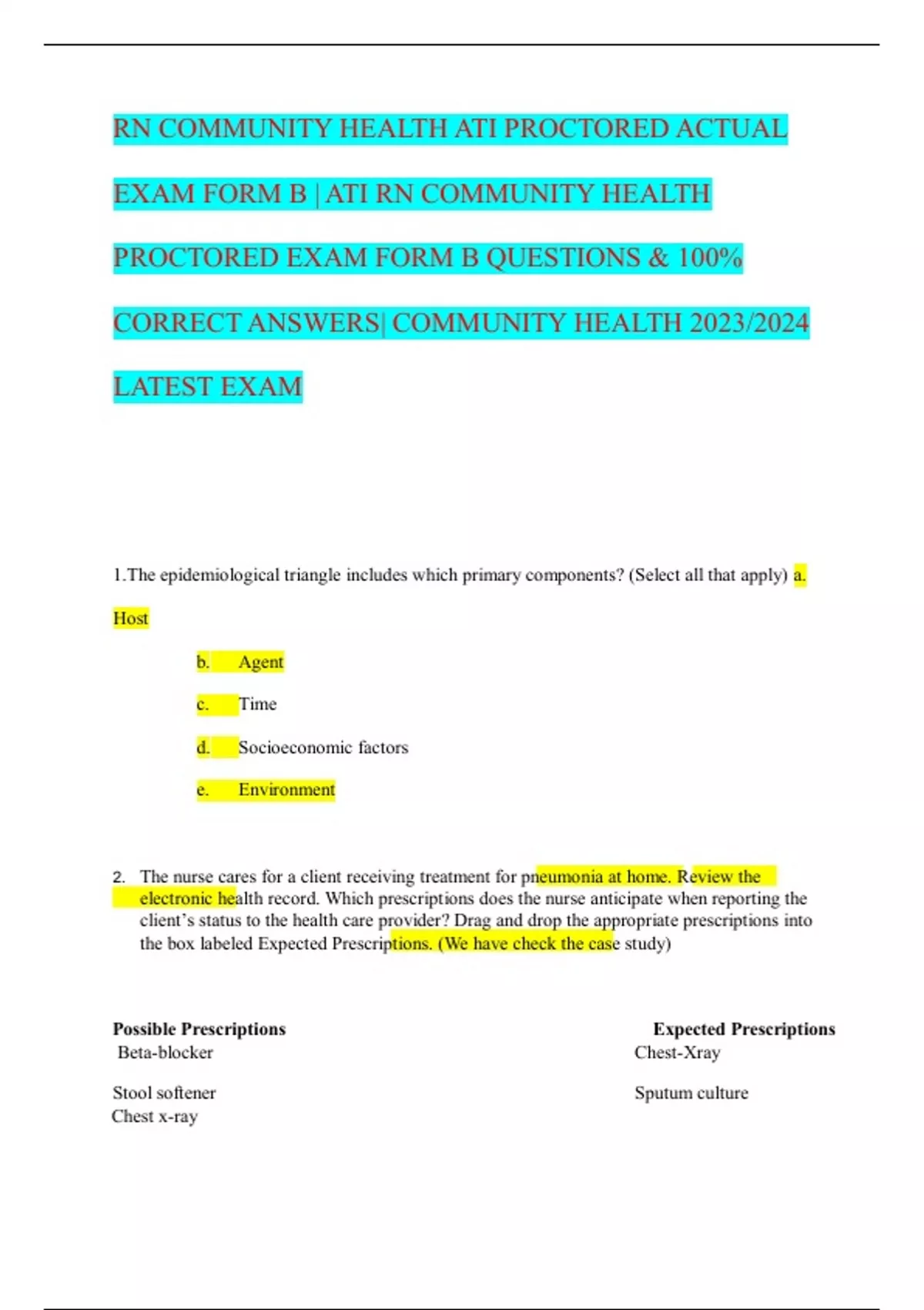 RN COMMUNITY HEALTH ATI PROCTORED ACTUAL EXAM FORM B | ATI RN COMMUNITY HEALTH PROCTORED EXAM FORM B QUESTIONS & 100% CORRECT ANSWERS| COMMUNITY HEALTH 2023/2024 LATEST EXAM