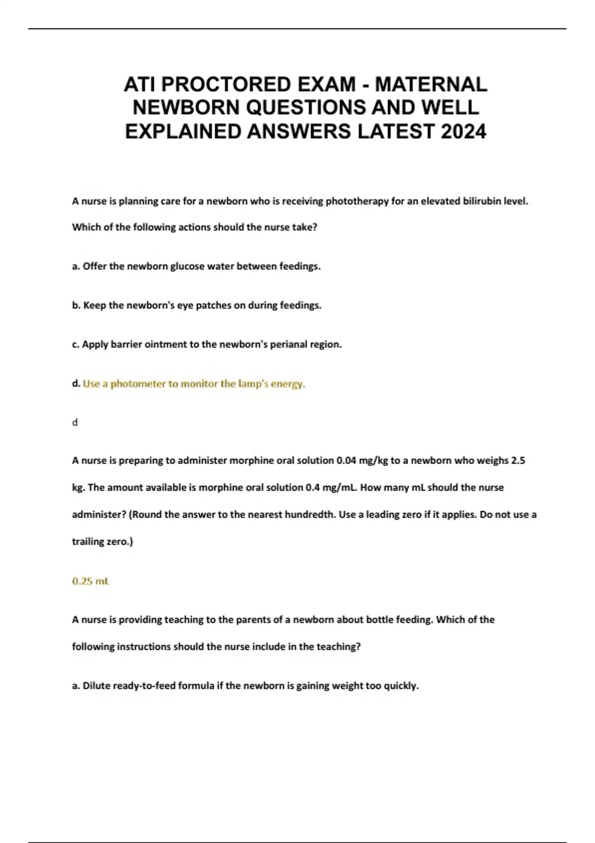 ATI PROCTORED EXAM - MATERNAL NEWBORN QUESTIONS AND WELL EXPLAINED ANSWERS LATEST 2024