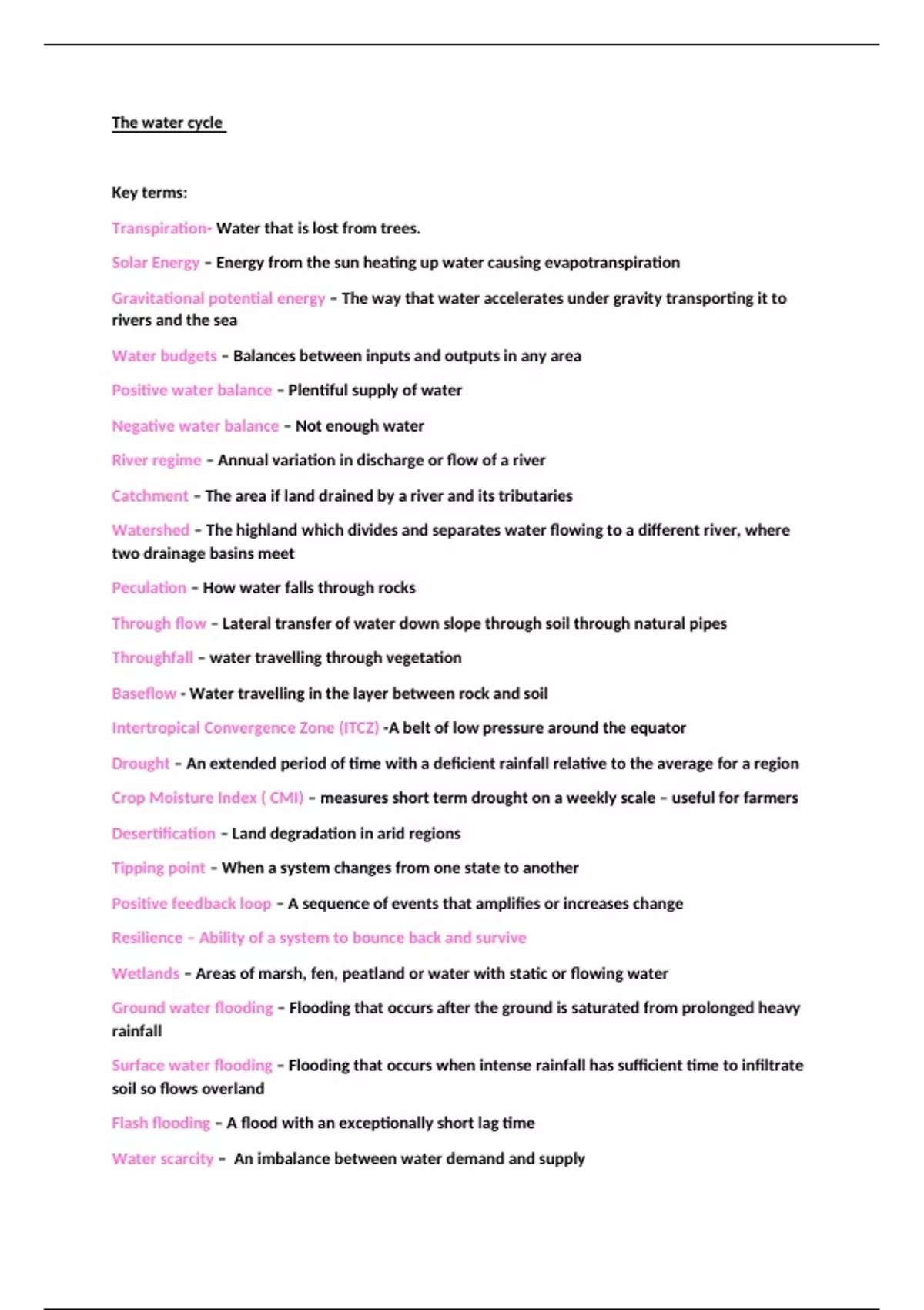 Solar Energy – Energy from the sun heating up water causing evapotranspiration