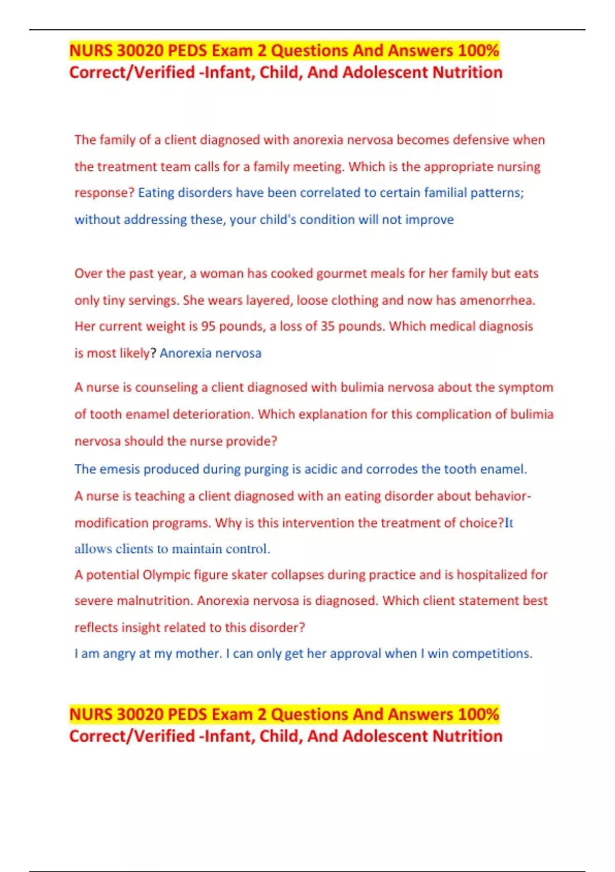 - NURS 30020 PEDS Eam 2 Questios And Ansers 100%