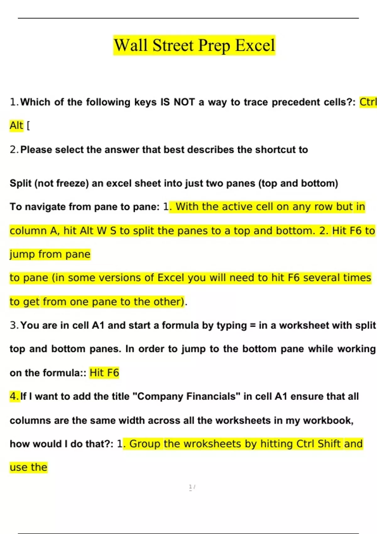 wall street prep excel exam
