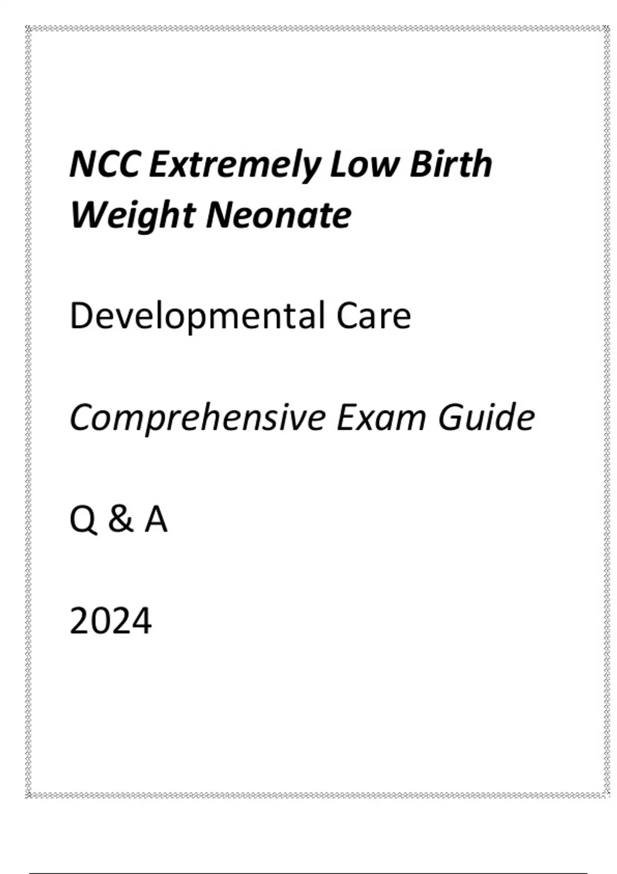 NCC ELBW (DEVELOPMENTAL CARE) COMPREHENSIVE EXAM GUIDE Q & A 2024.