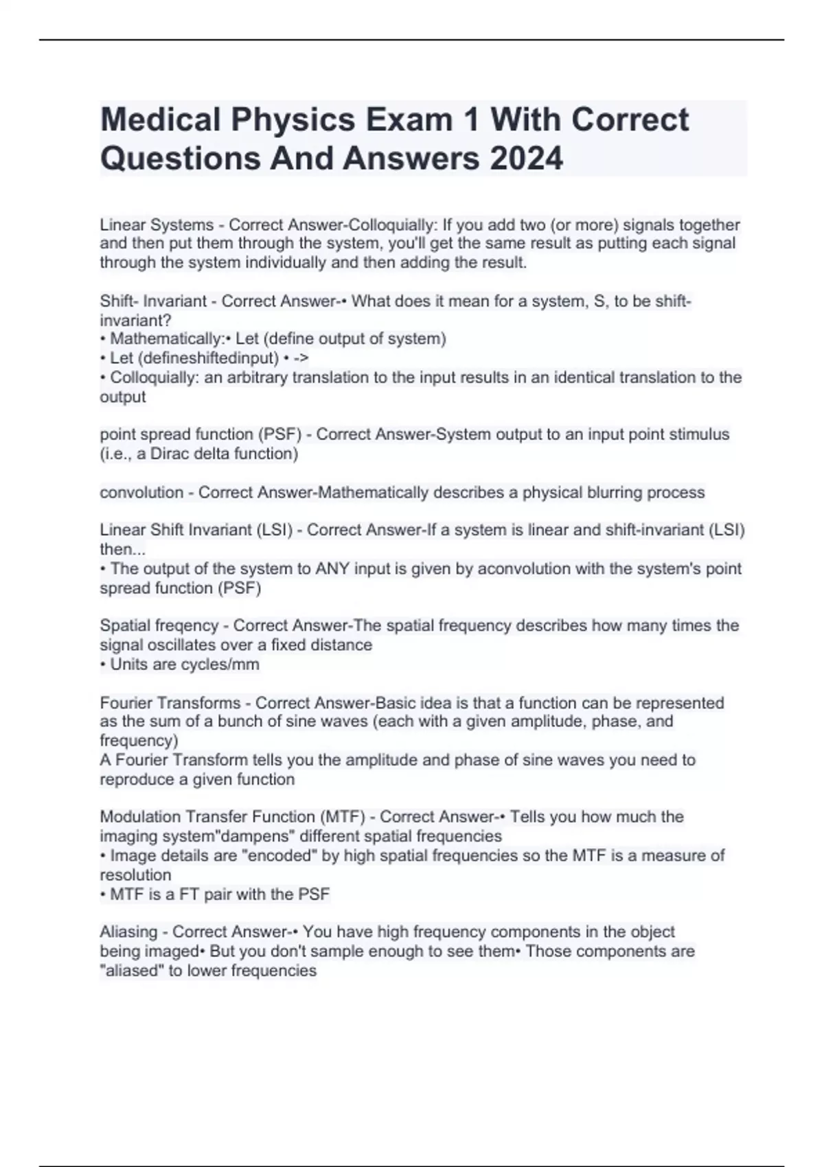 Medical Physics Exam 1 With Correct Questions And Answers 2024