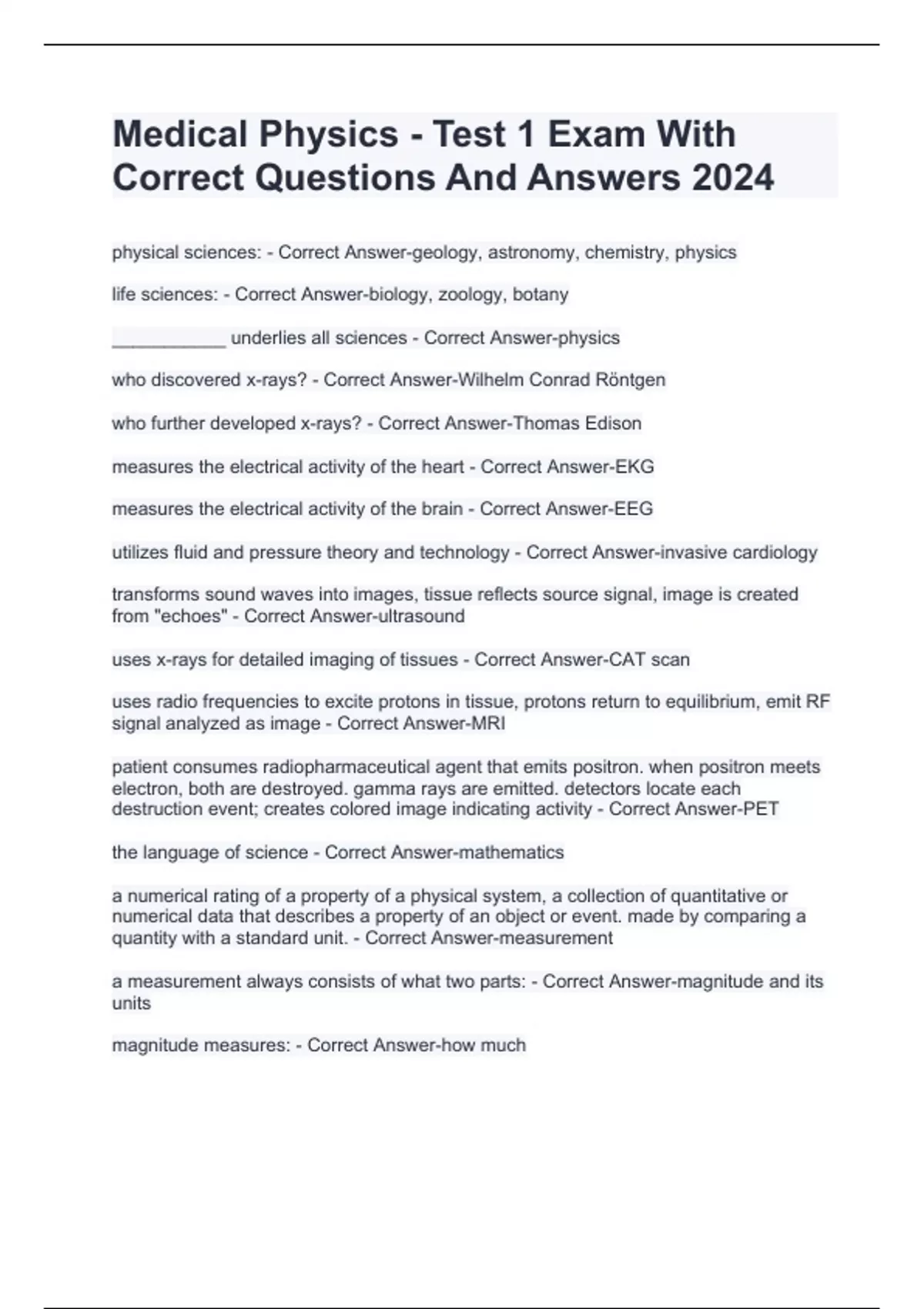 Medical Physics - Test 1 Exam With Correct Questions And Answers 2024
