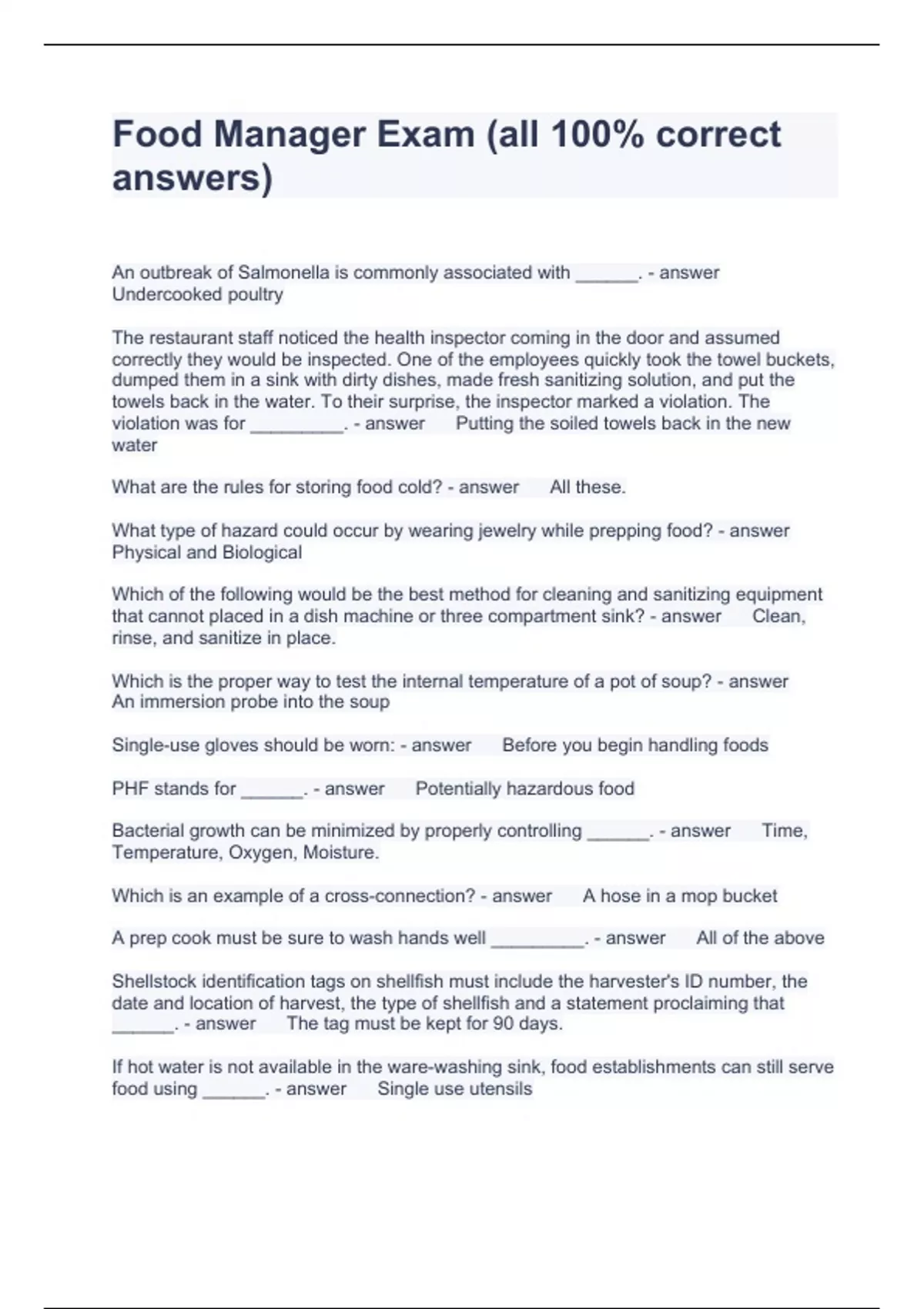 Food Manager Exam (all 100% correct answers) Latest Updated 2024