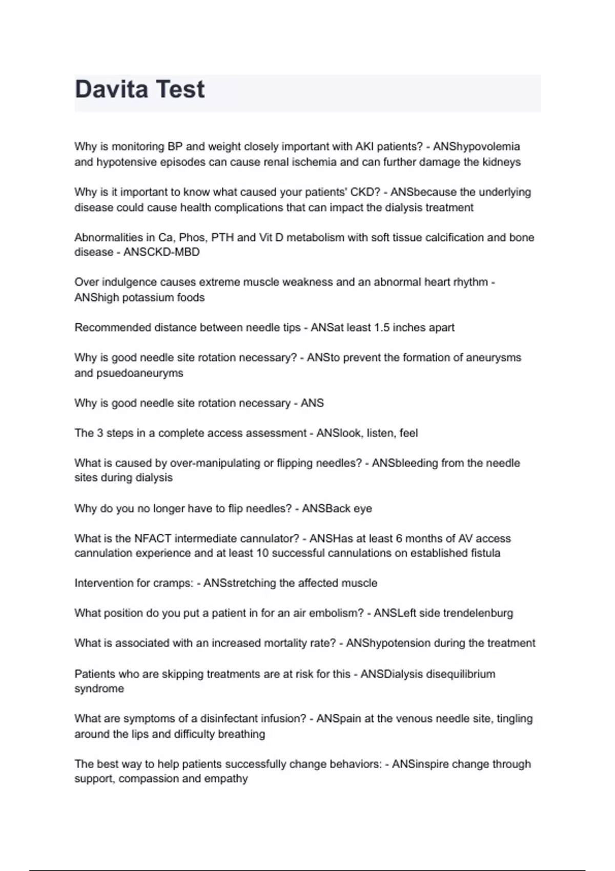 Why is good needle site rotation necessary? - ANSto prevent the formation of aneurysms