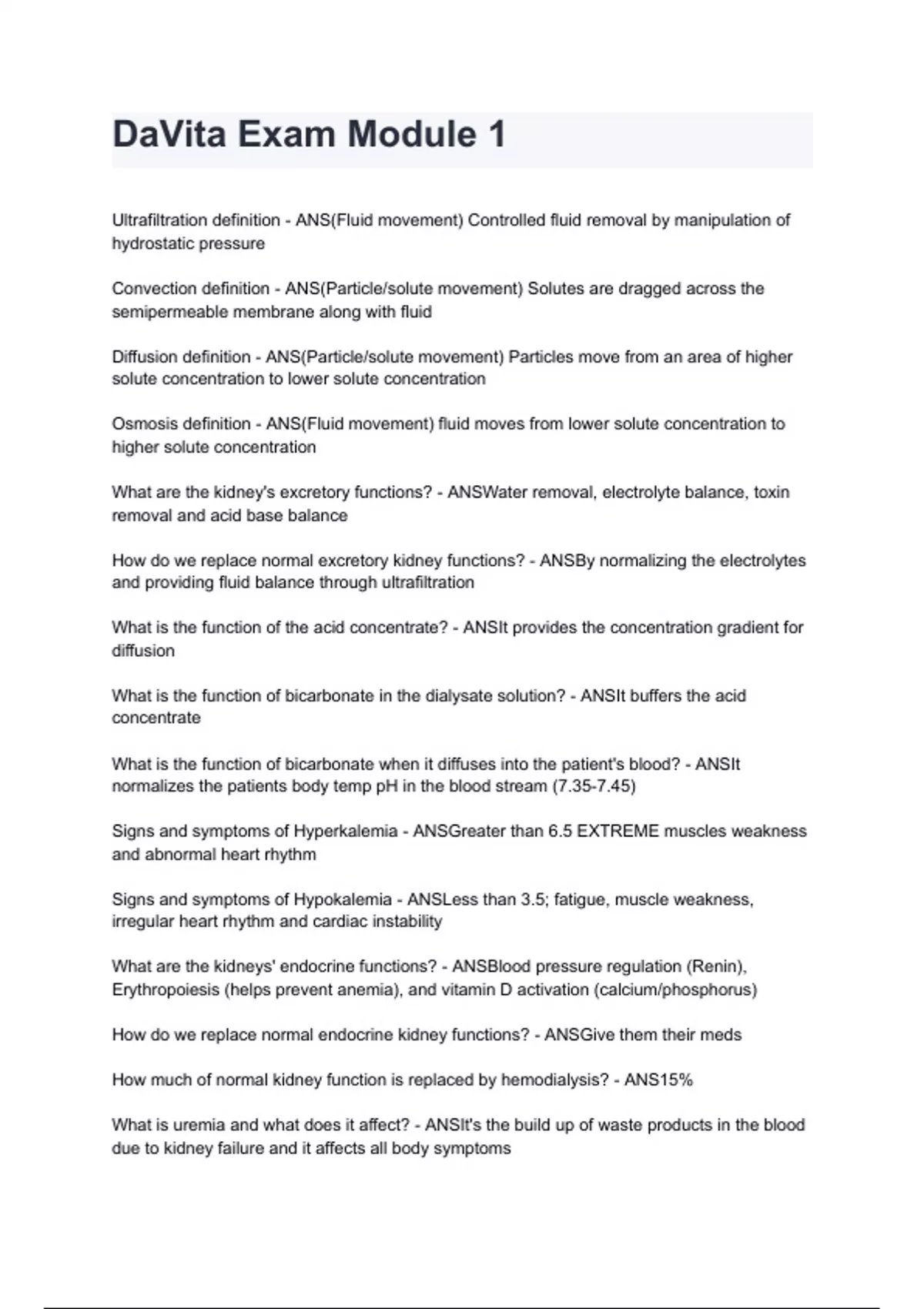 DaVita Exam Module 1 questions and answers graded A+ by experts 2024/2025