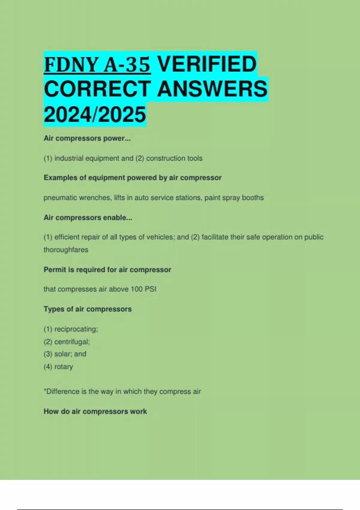 FDNY A-35 VERIFIED CORRECT ANSWERS 2024/2025
