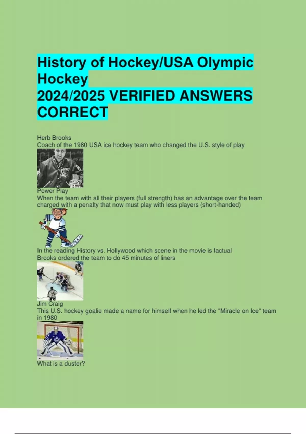 History of Hockey/USA Olympic Hockey 2024/2025 VERIFIED ANSWERS CORRECT