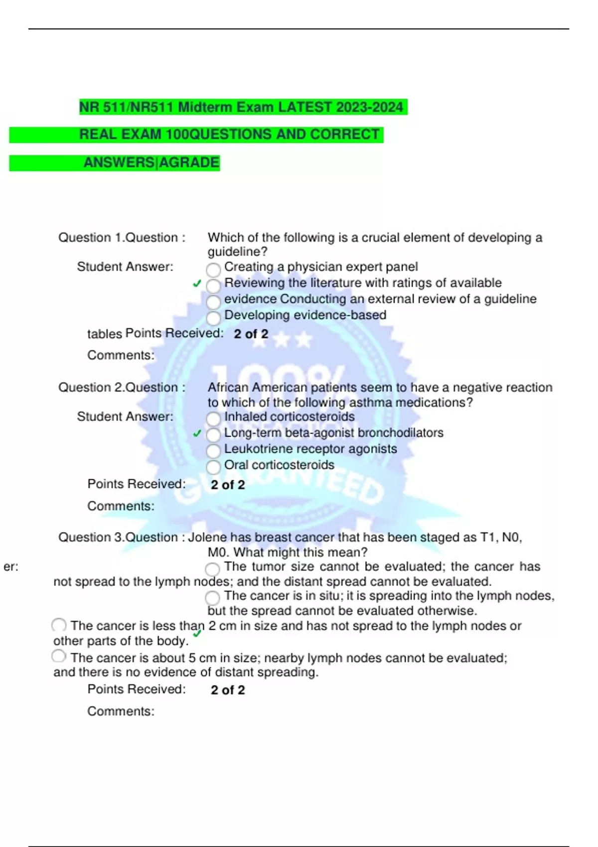 NR 511/NR511 Midterm Exam LATEST REAL EXAM 100QUESTIONS AND CORRECT ANSWERS|AGRADE