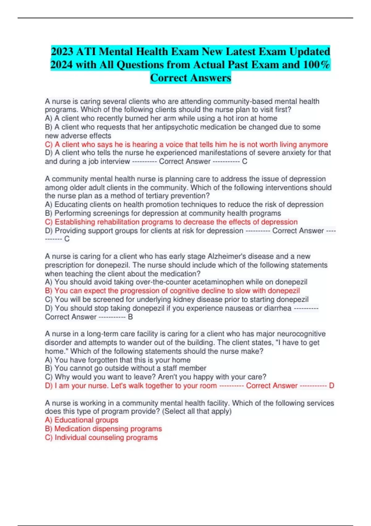 2023 ATI Mental Health Exam New Latest Exam Updated 2024 with All Questions from Actual Past Exam and 100% Correct Answers