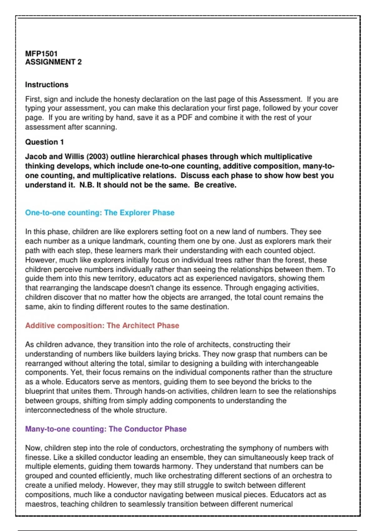 one counting, and multiplicative relations. Discuss each phase to show how best you