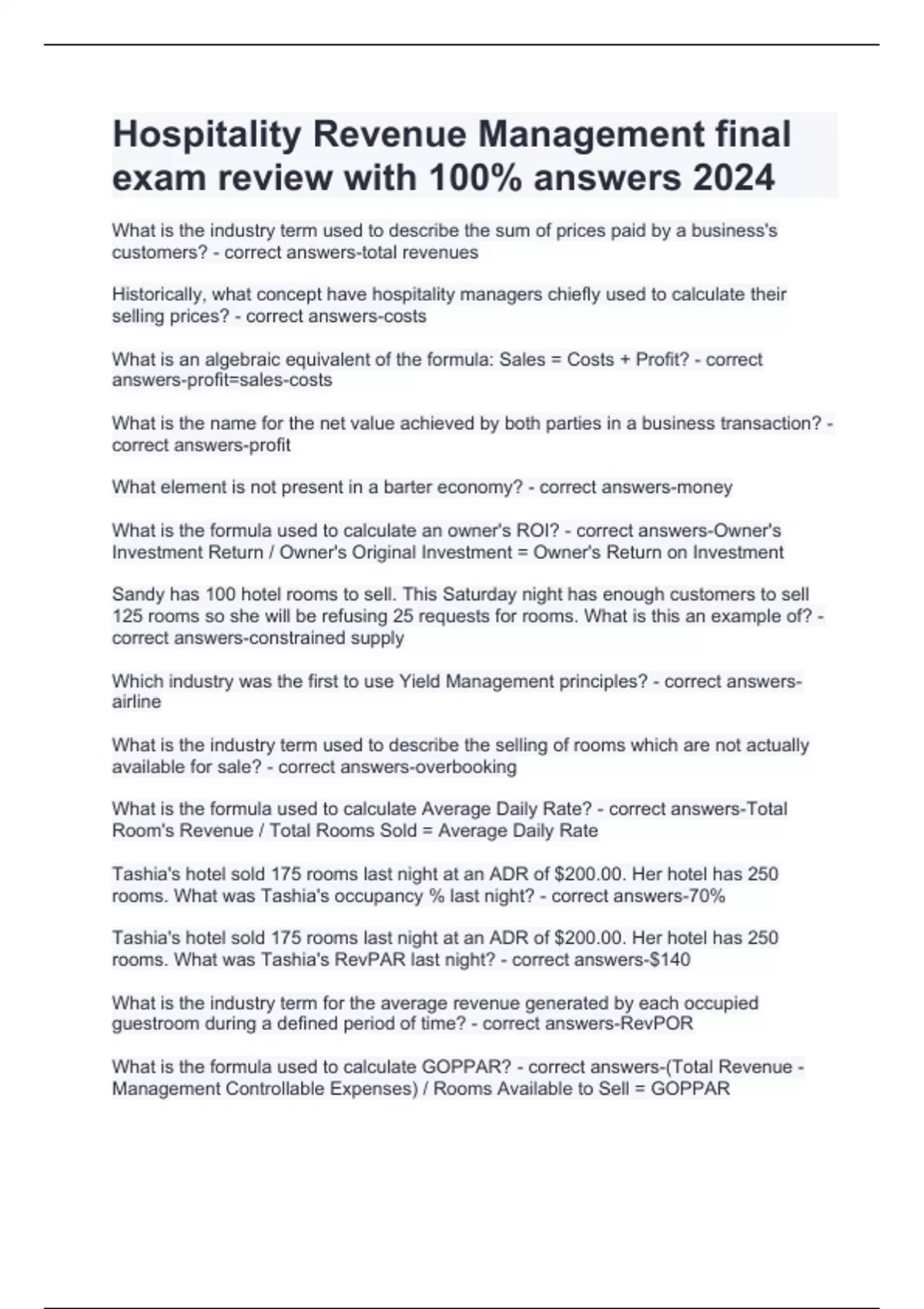 Hospitality Revenue Management final exam review with 100% answers 2024