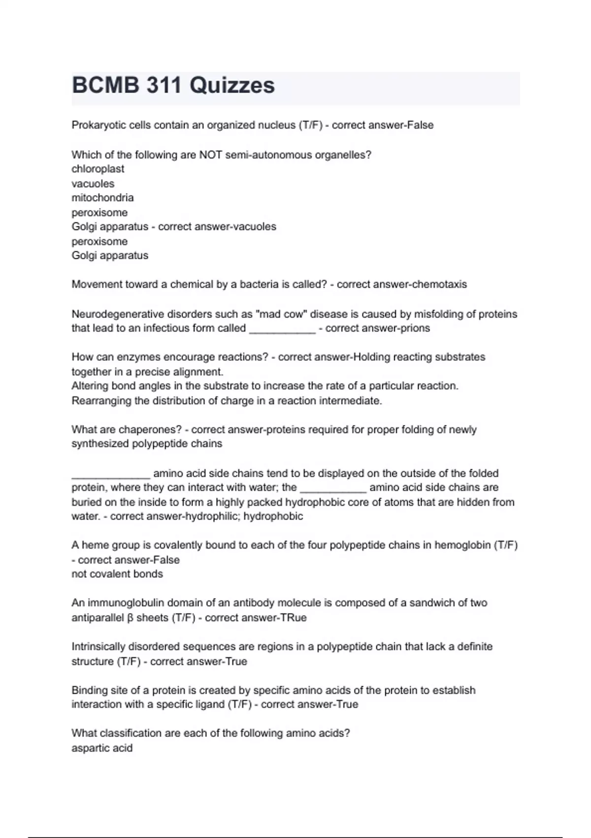 BCMB 311 Quizzes with correct answers