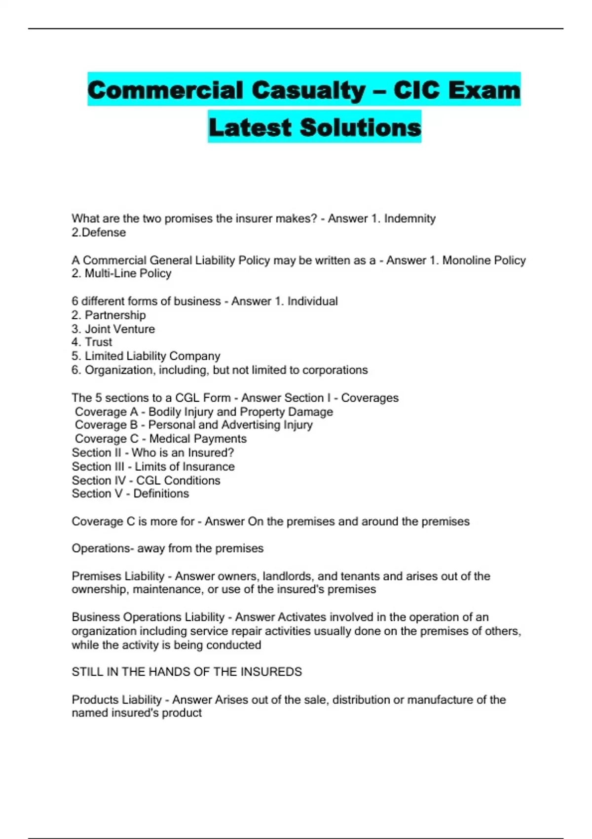 Commercial Casualty – CIC Exam