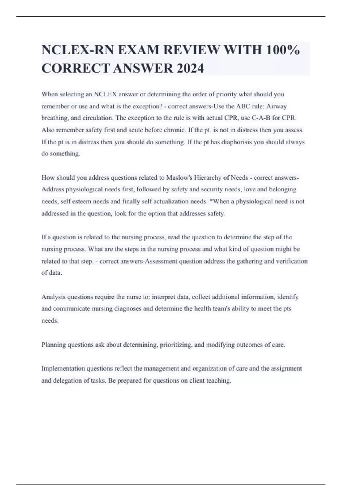 NCLEX-RN EXAM REVIEW WITH 100% CORRECT ANSWER 2024
