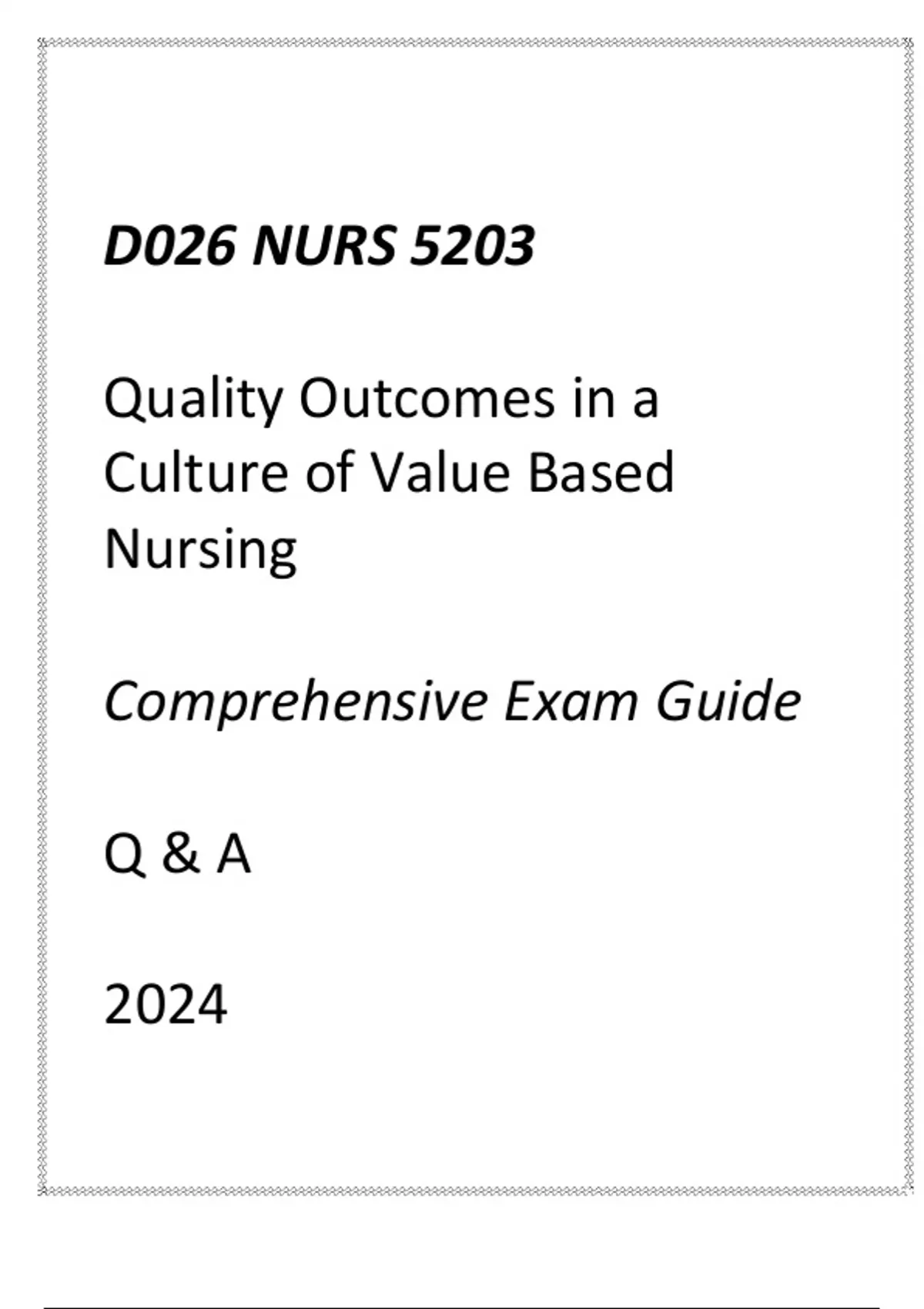 (WGU D026) NURS 5203 Quality Outcomes in a Culture of Value Based Nursing Comprehensive Exam(WGU D026) NURS 5203 Quality Outcomes in a Culture of Value Based Nursing Comprehensive Exam