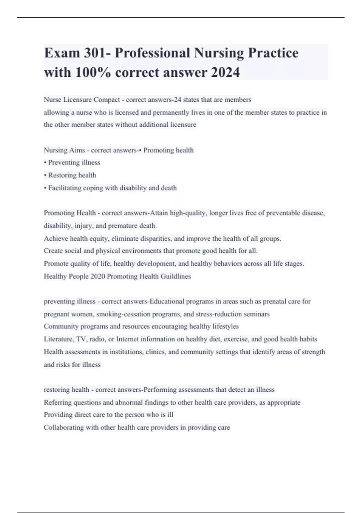 Exam 301- Professional Nursing Practice with 100% correct answer 2024