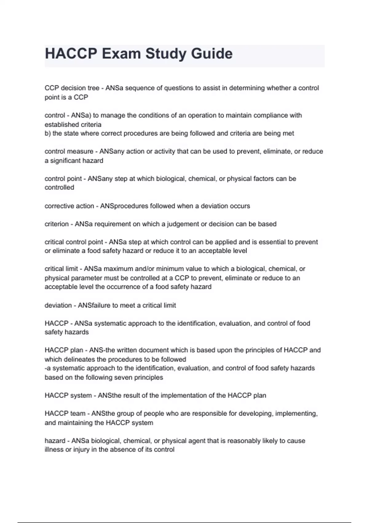 HACCP Exam Study Guide questions and answers graded A+ by experts 2024/2025