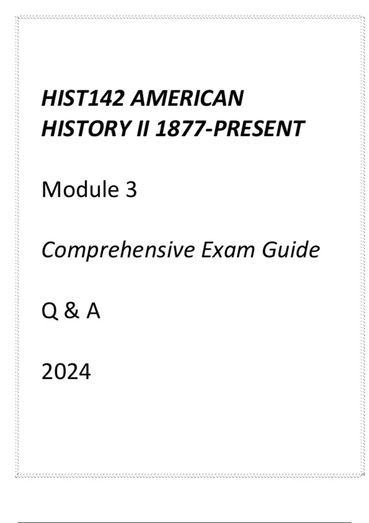 HIST142 American History II 1877-Present Module 3 Comprehensive Exam Guide Q & A 2024.HIST142 American History II 1877-Present Module 3 Comprehensive Exam Guide Q & A 2024.