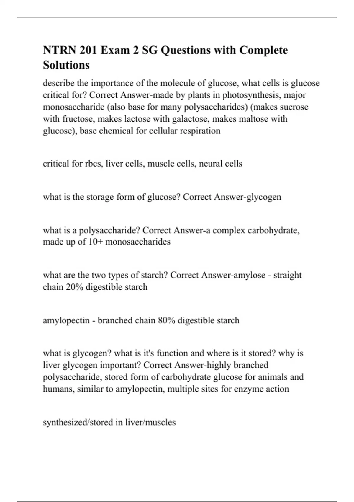 NTRN 201 Case Western Reserve University -NTRN 201 Exam 2 SG Questions with Complete Solutions.