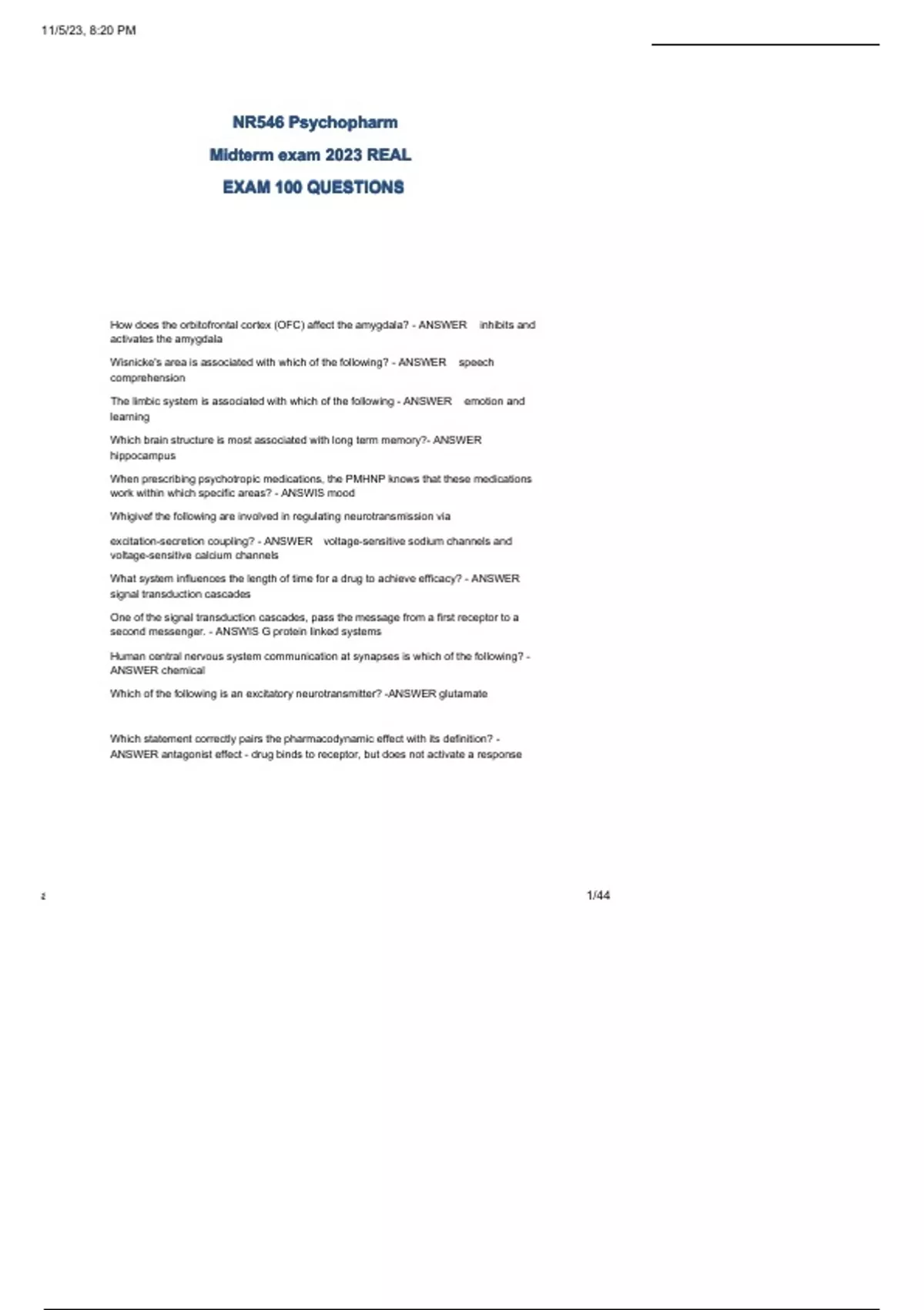 NR546 Psychopharm Midterm exam 2023 REAL EXAM 100 QUESTIONS