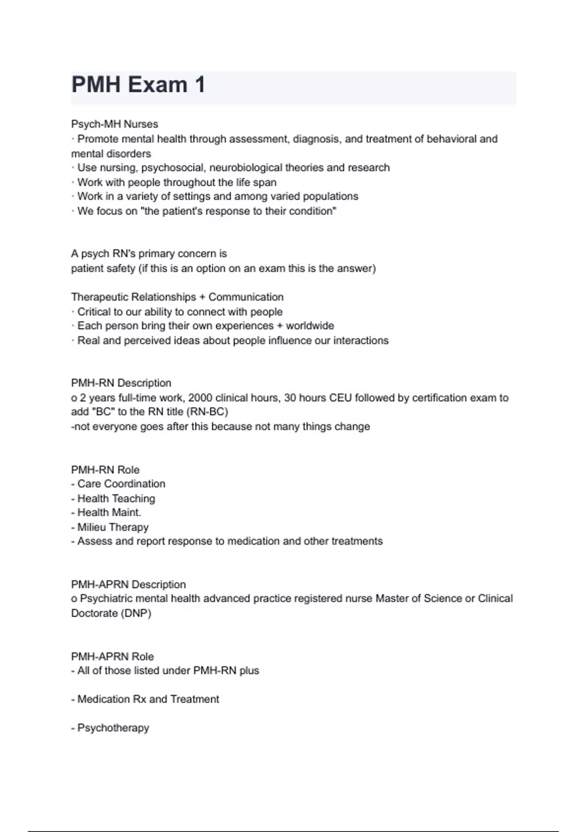 PMH Exam 1 with complete solution