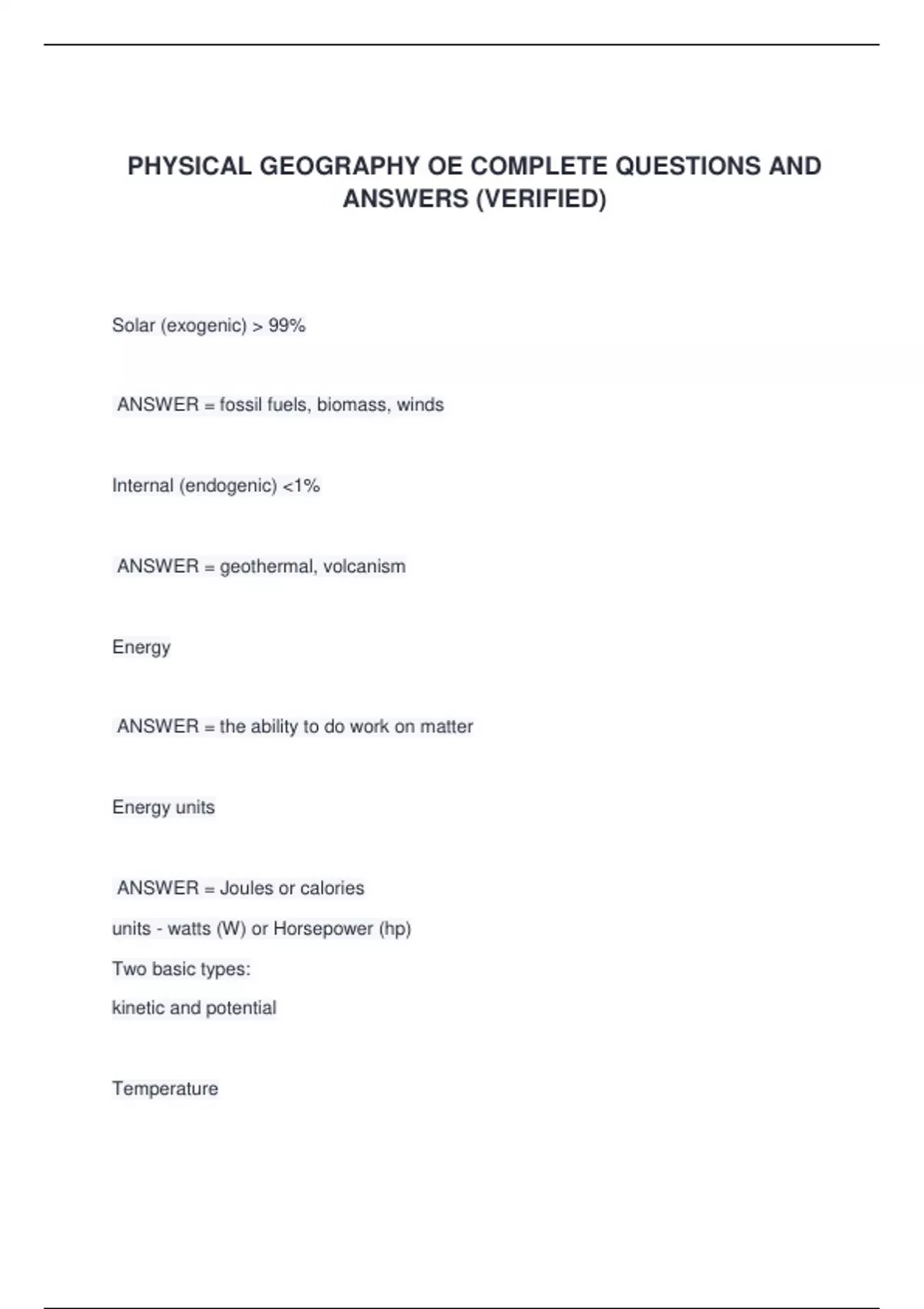 PHYSICAL GEOGRAPHY OE COMPLETE QUESTIONS AND ANSWERS (VERIFIED)
