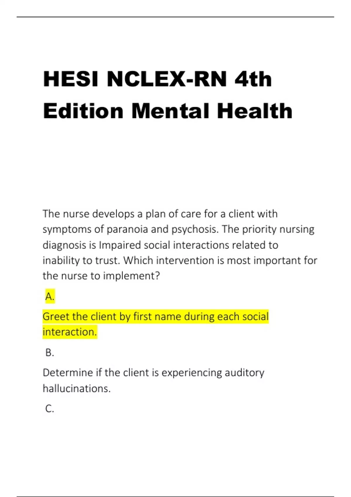 HESI NCLEX-RN 4th Edition Mental Health