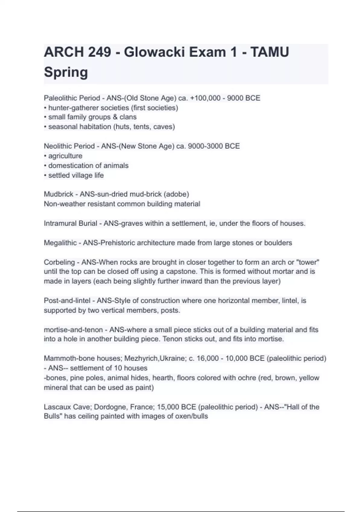 ARCH 249 - Glowacki Exam 1 - TAMU Spring