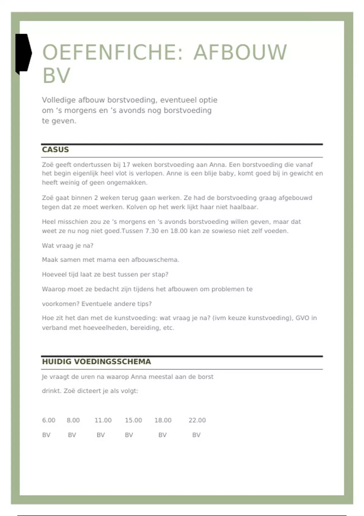 Dit is een oefening op de afbouw van borstvoeding. Gemaakt in de les.