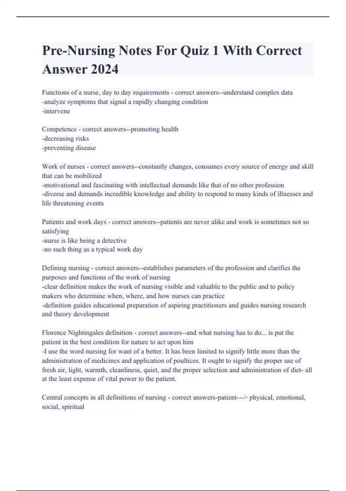 pre nursing notes for quiz 1 with correct answer 2