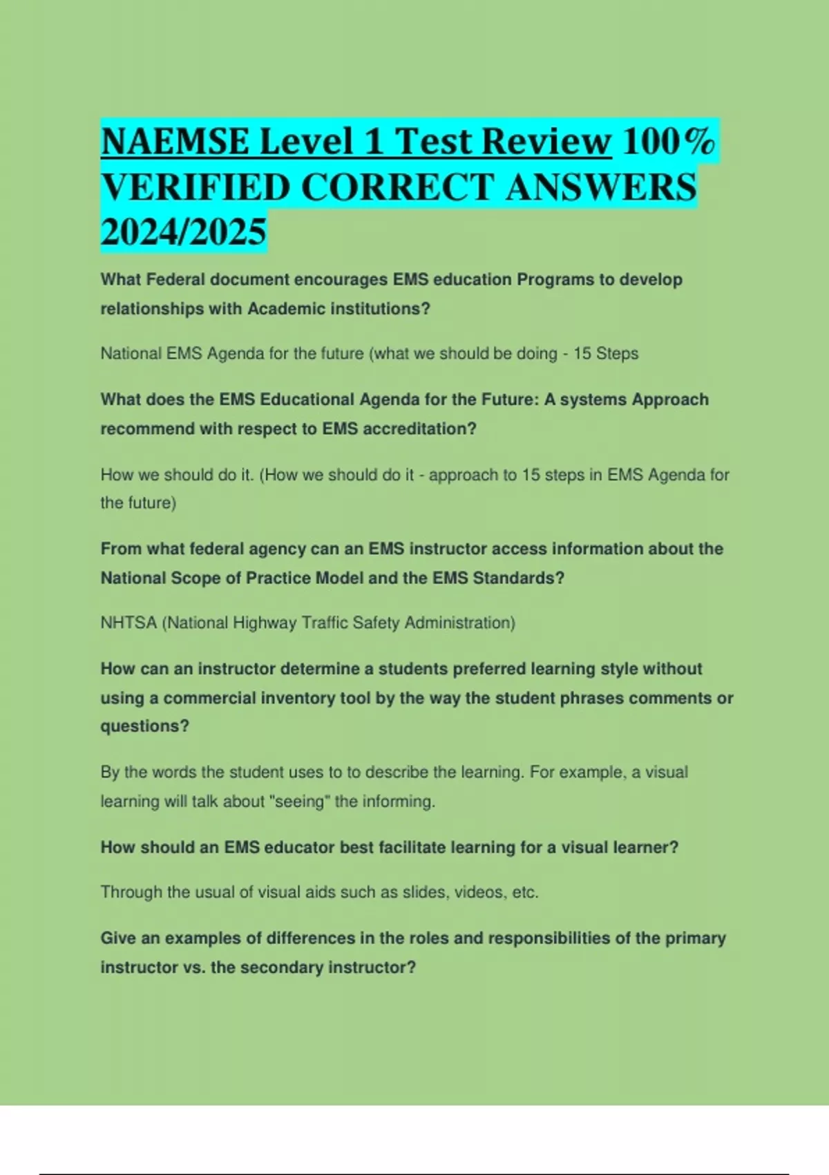 NAEMSE Level 1 Test Review 100% VERIFIED CORRECT ANSWERS 2024/2025