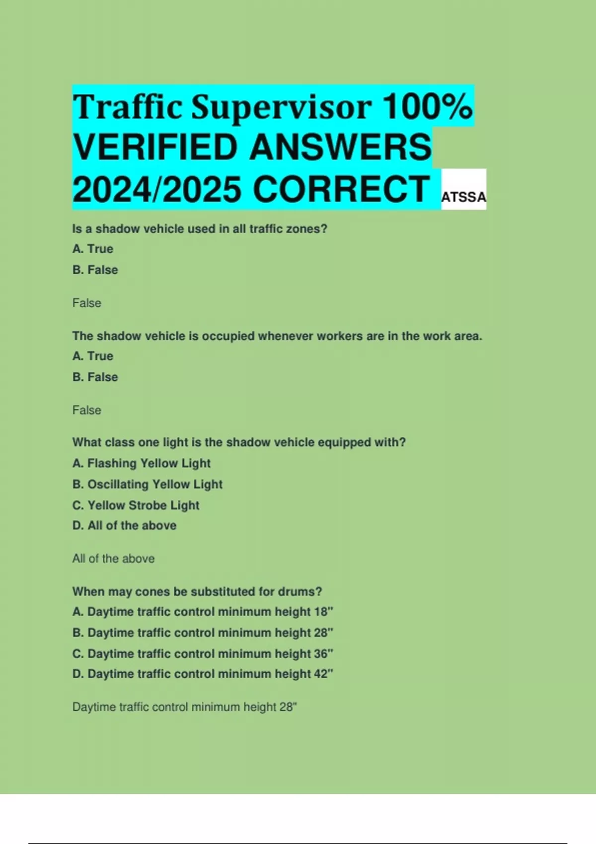Traffic Supervisor 100% VERIFIED ANSWERS 2024/2025 CORRECT ATSSA
