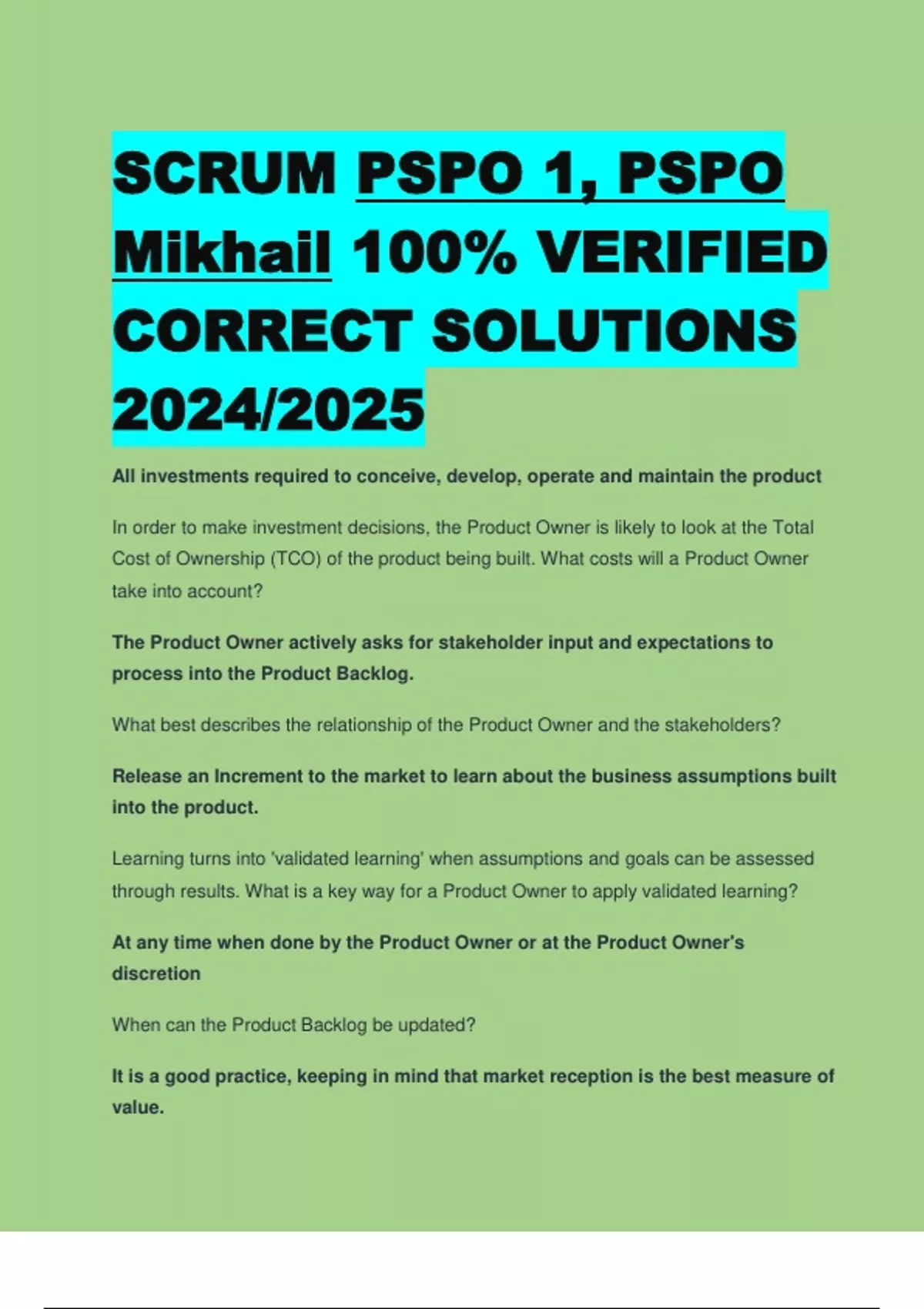 SCRUM PSPO 1, PSPO Mikhail 100% VERIFIED CORRECT SOLUTIONS 2024/2025