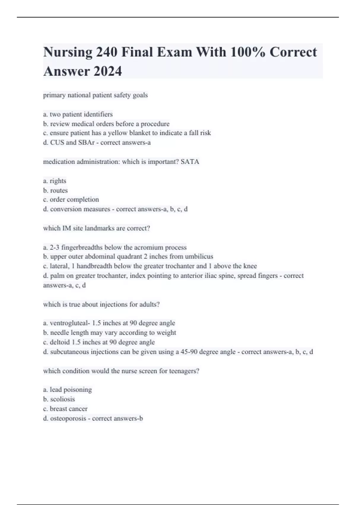 Nursing 240 Final Exam With 100% Correct Answer 2024