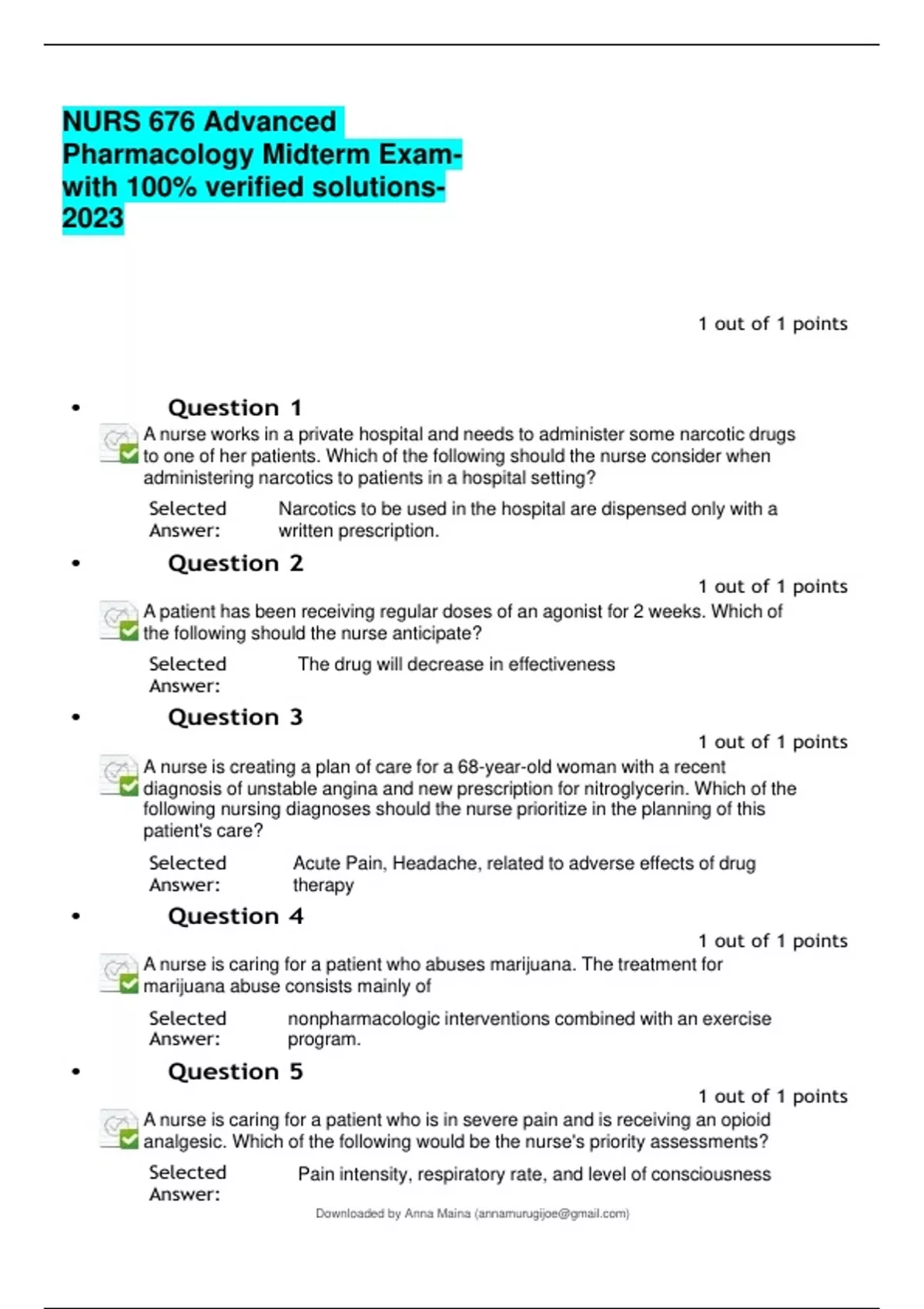 NURS 676 Advanced Pharmacology Midterm Examwith 100% verified solutions2023