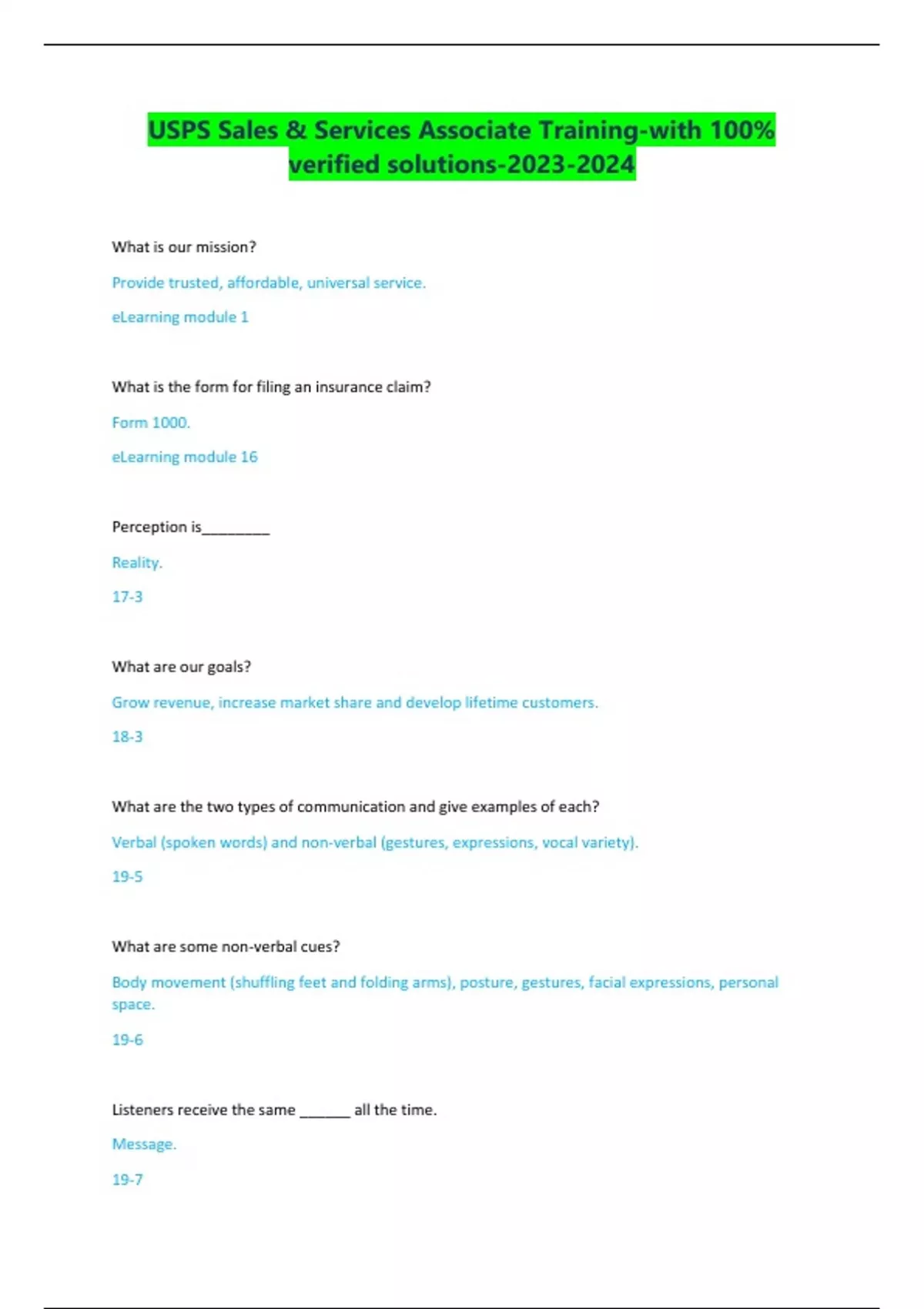 USPS Sales & Services Associate Training-with 100% verified solutions-