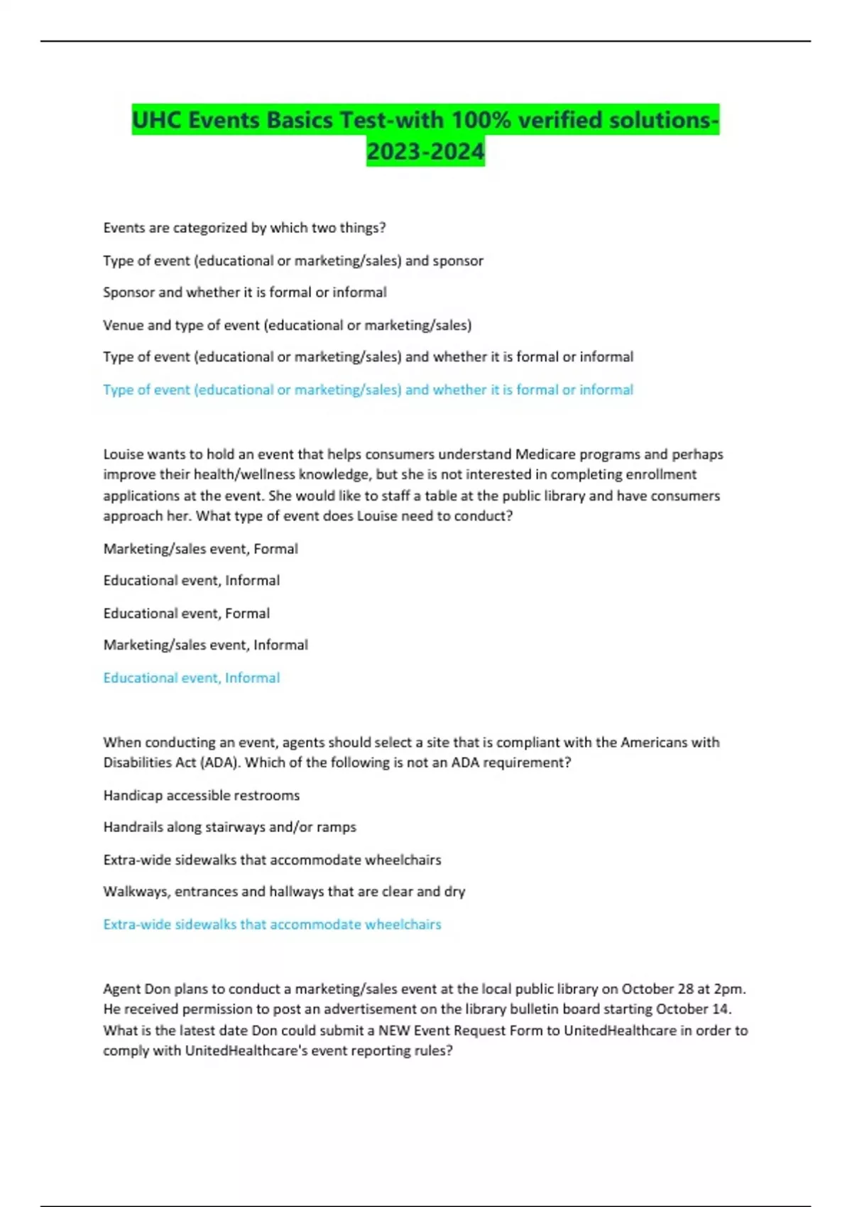 UHC Events Basics Test-with 100% verified solutions