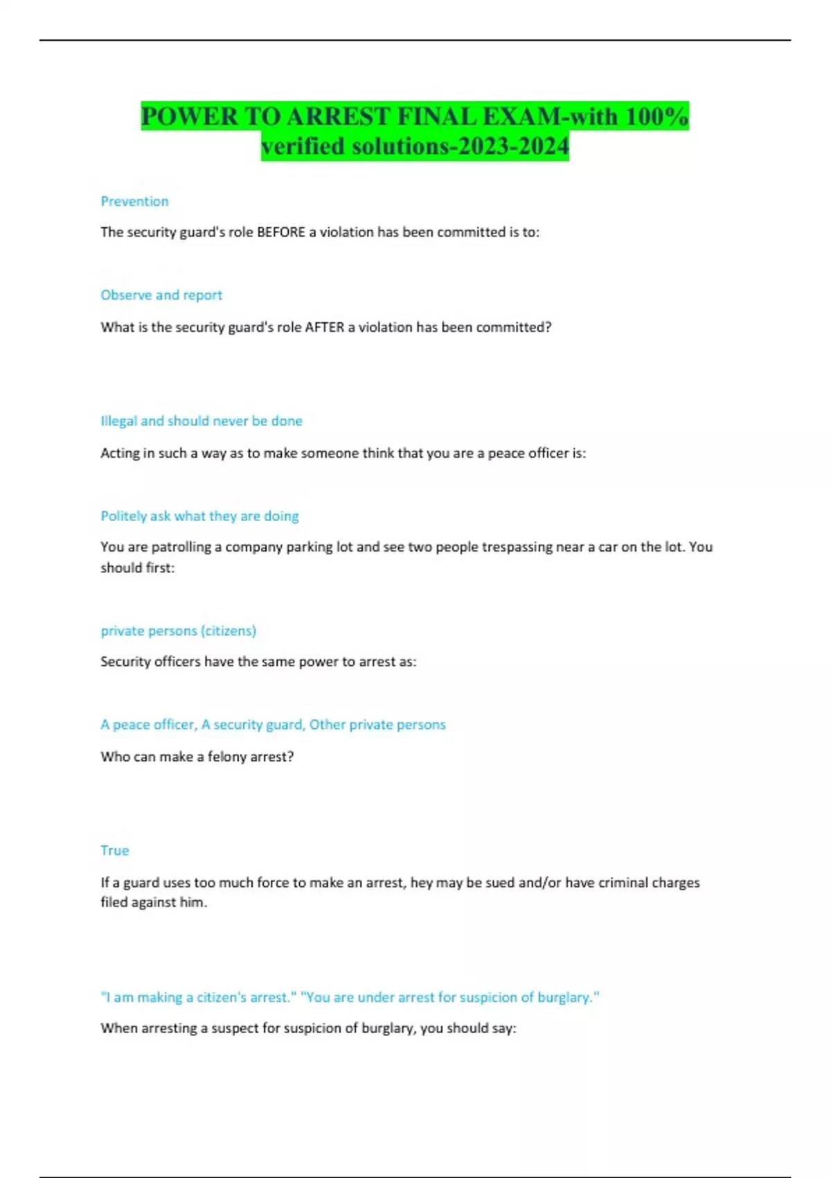 POWER TO ARREST FINAL EXAM-with 100% verified solutions-