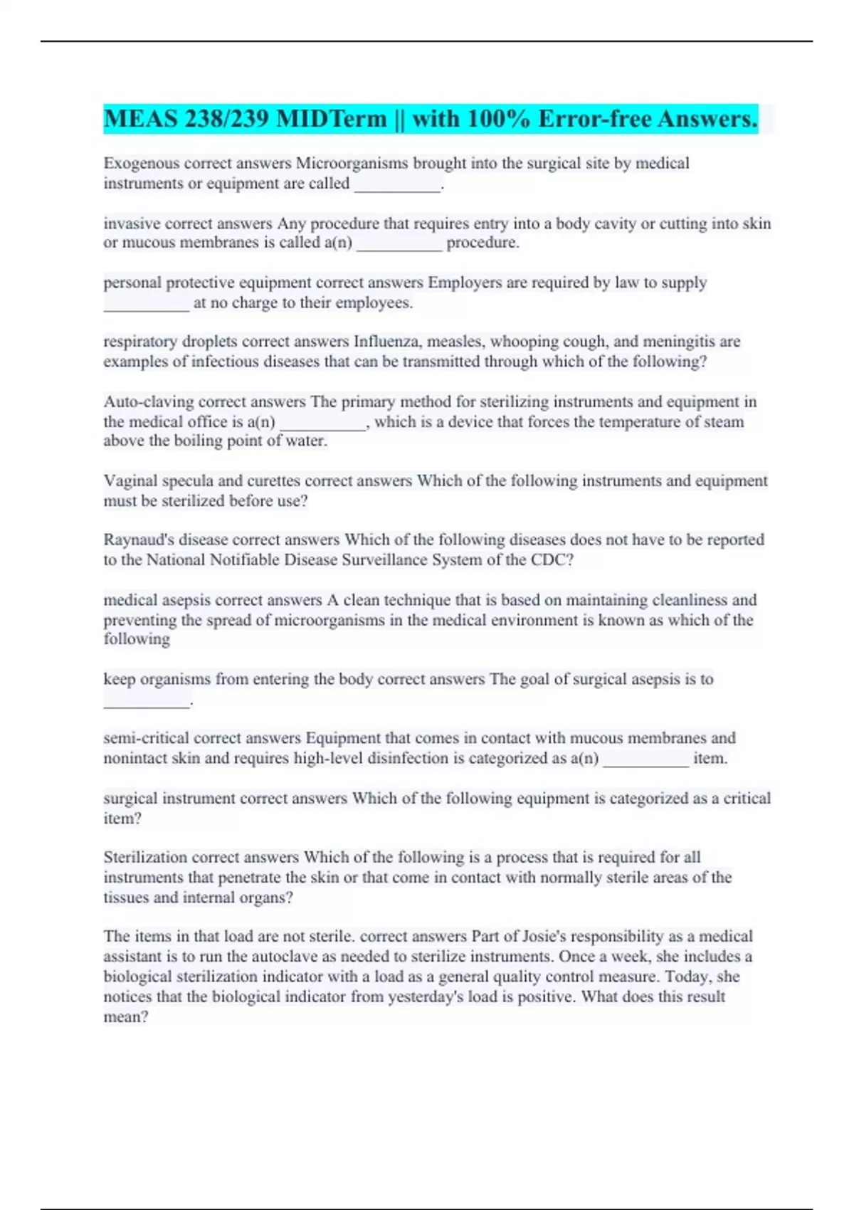 MEAS 238/239 MIDTerm || with 100% Error-free Answers.