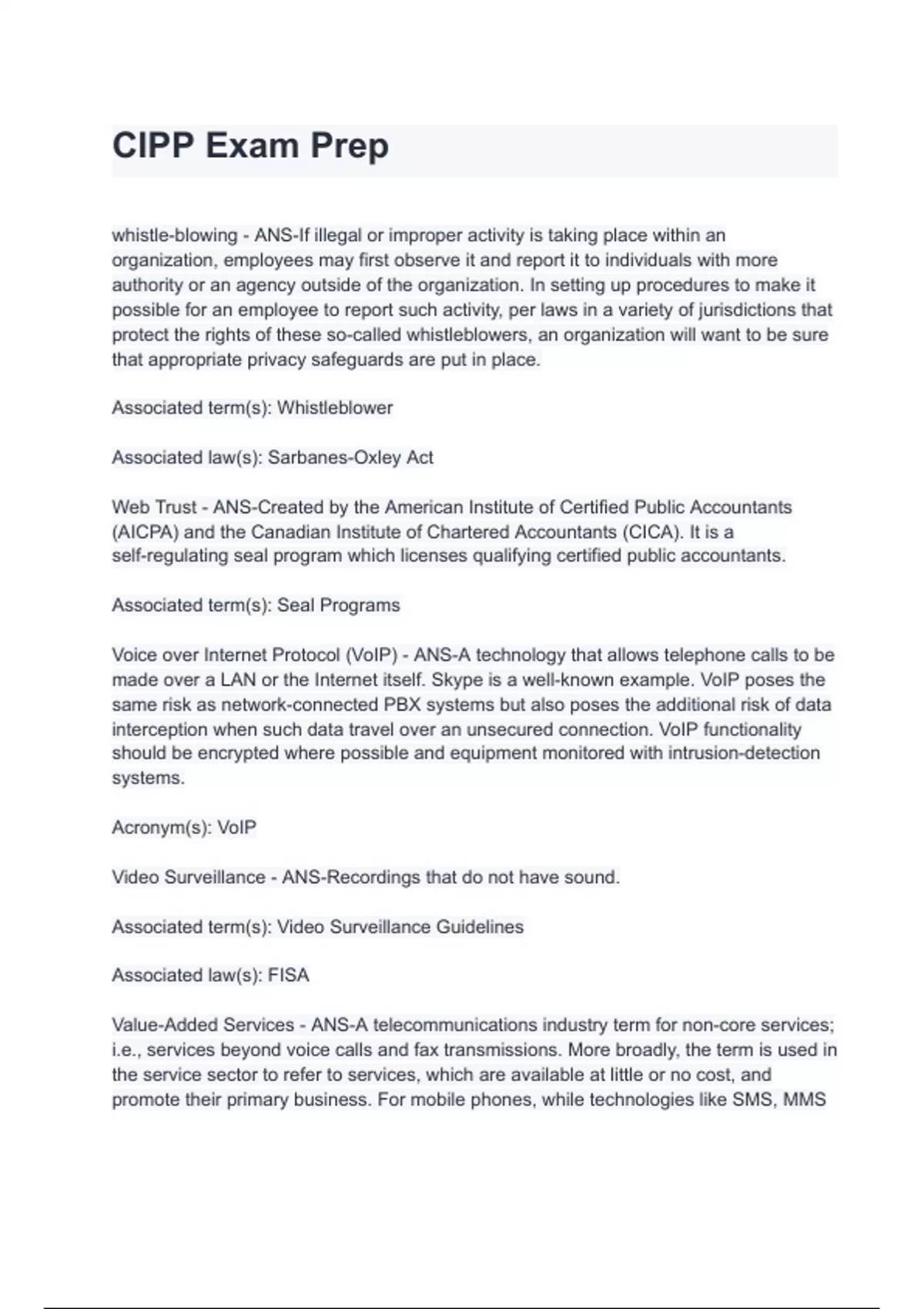CIPP Exam Prep