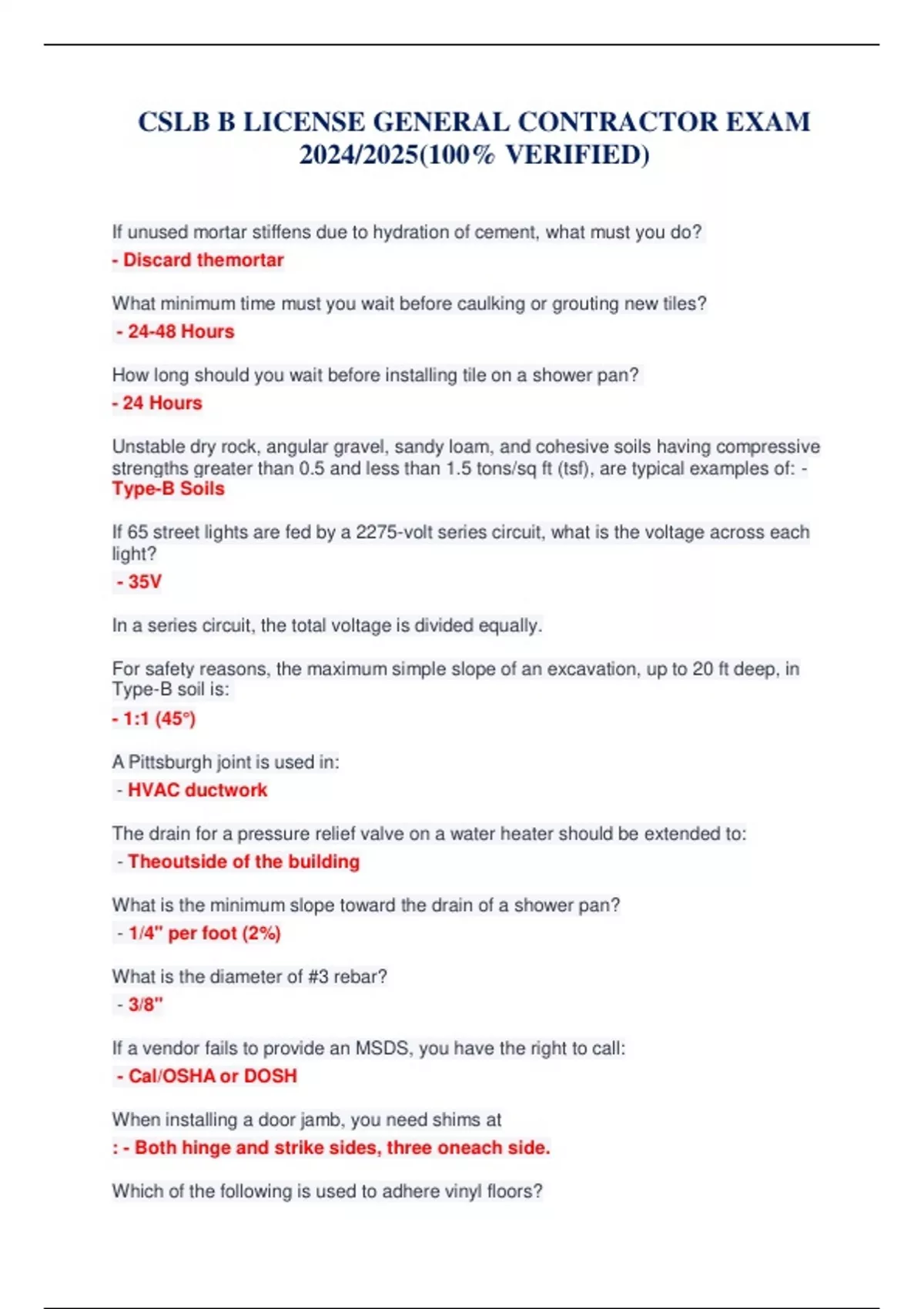 CSLB B LICENSE GENERAL CONTRACTOR EXAM 2024/2025(100% VERIFIED)