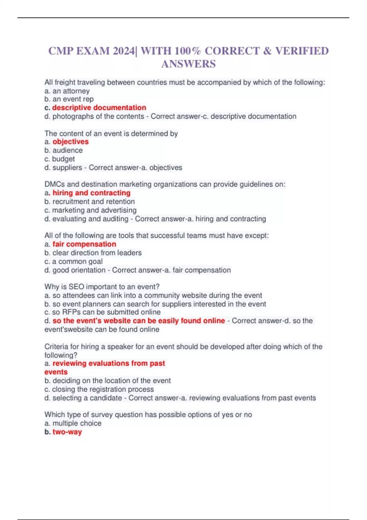 CMP EXAM 2024| WITH 100% CORRECT & VERIFIED ANSWERS