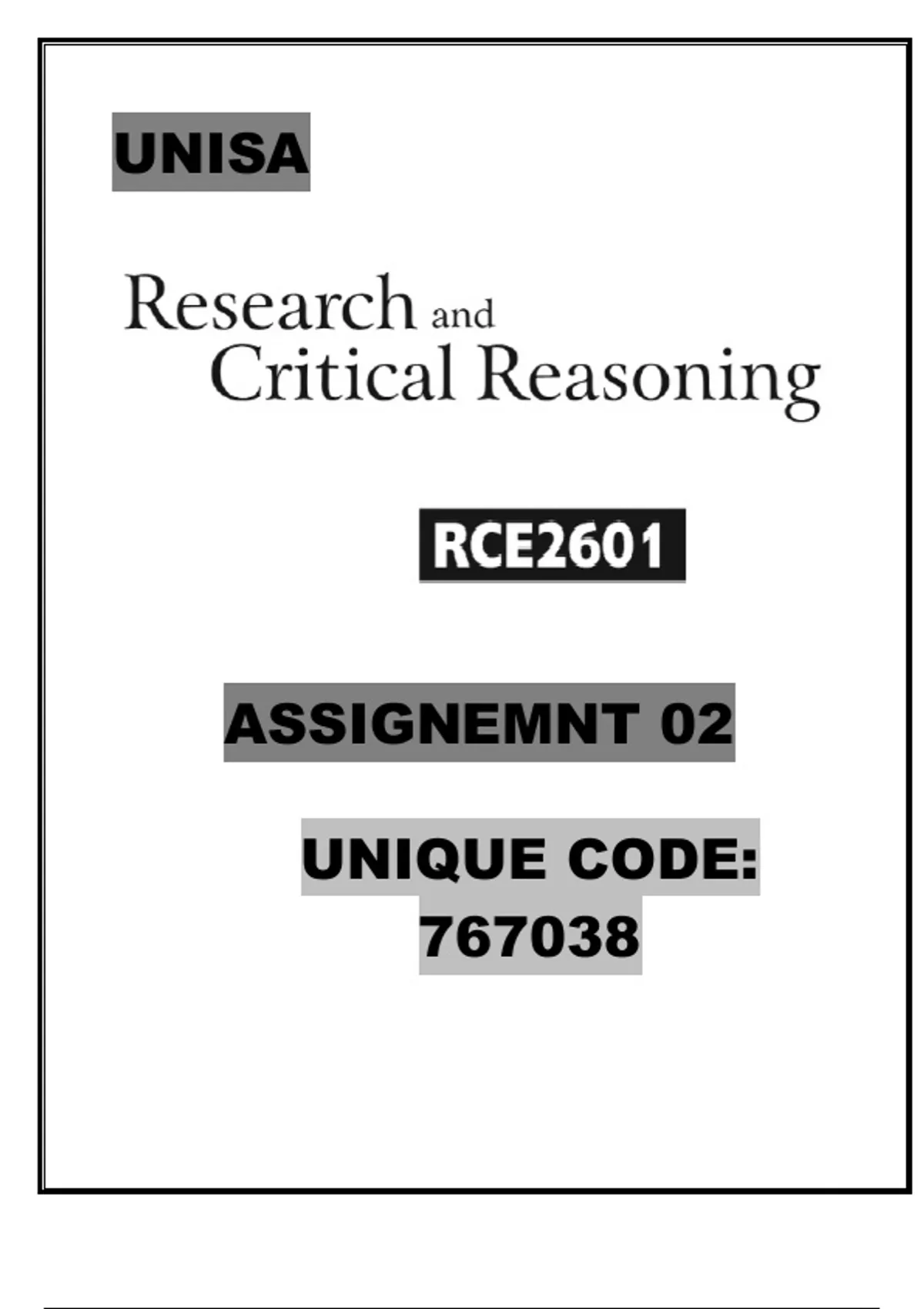 Rce2601 ASSIGNMENT 02 Distinction Pass