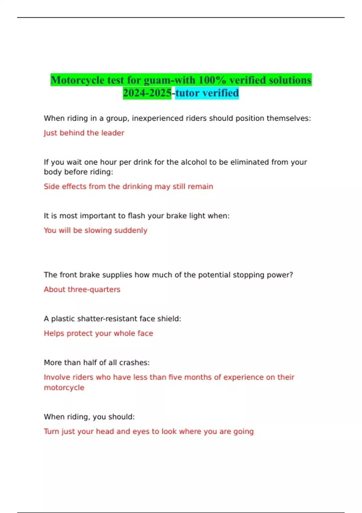 Motorcycle test for guam-with 100% verified solutions -tutor verified
