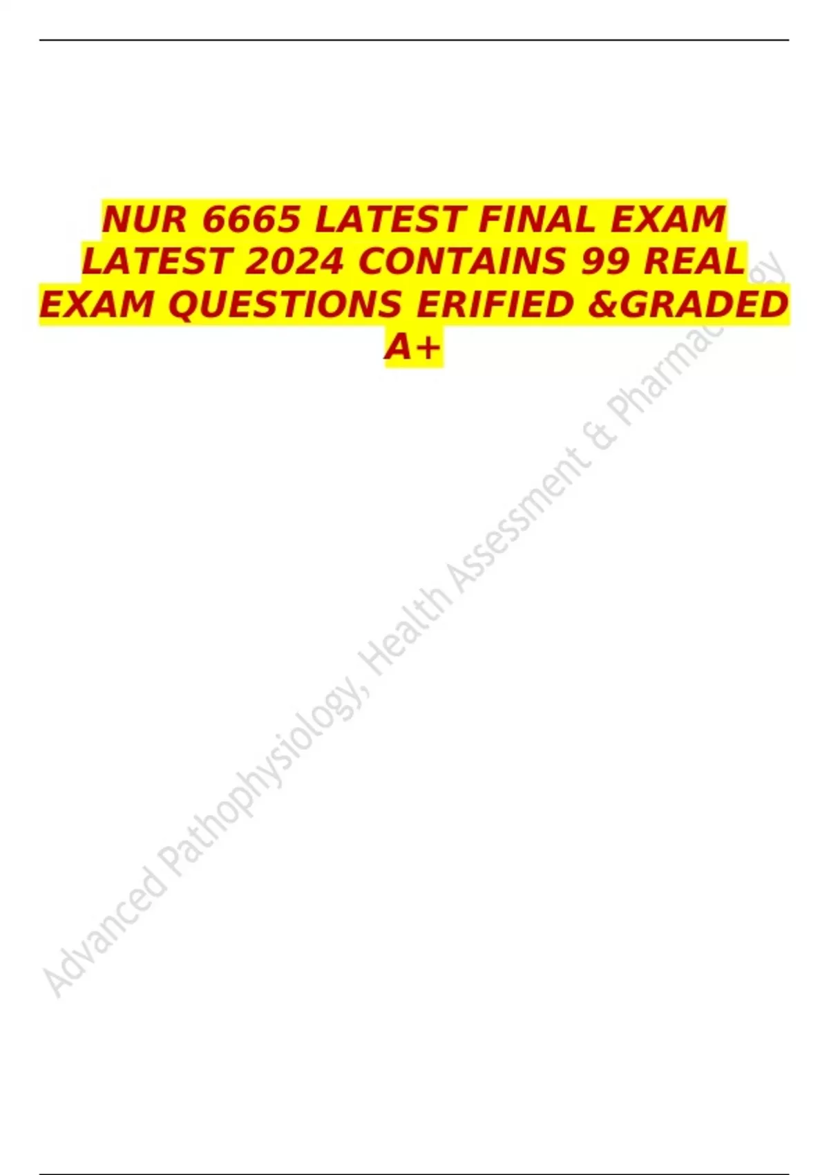 NUR 6665 LATEST FINAL EXAM LATEST 2024 CONTAINS 99 REAL EXAM QUESTIONS VERIFIED &GRADED A+